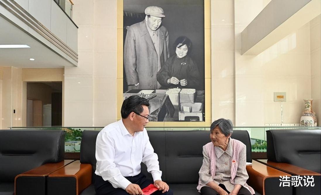 她满含激动与敬意地问候,而毛主席则微笑以对,给予她鼓励与关心。