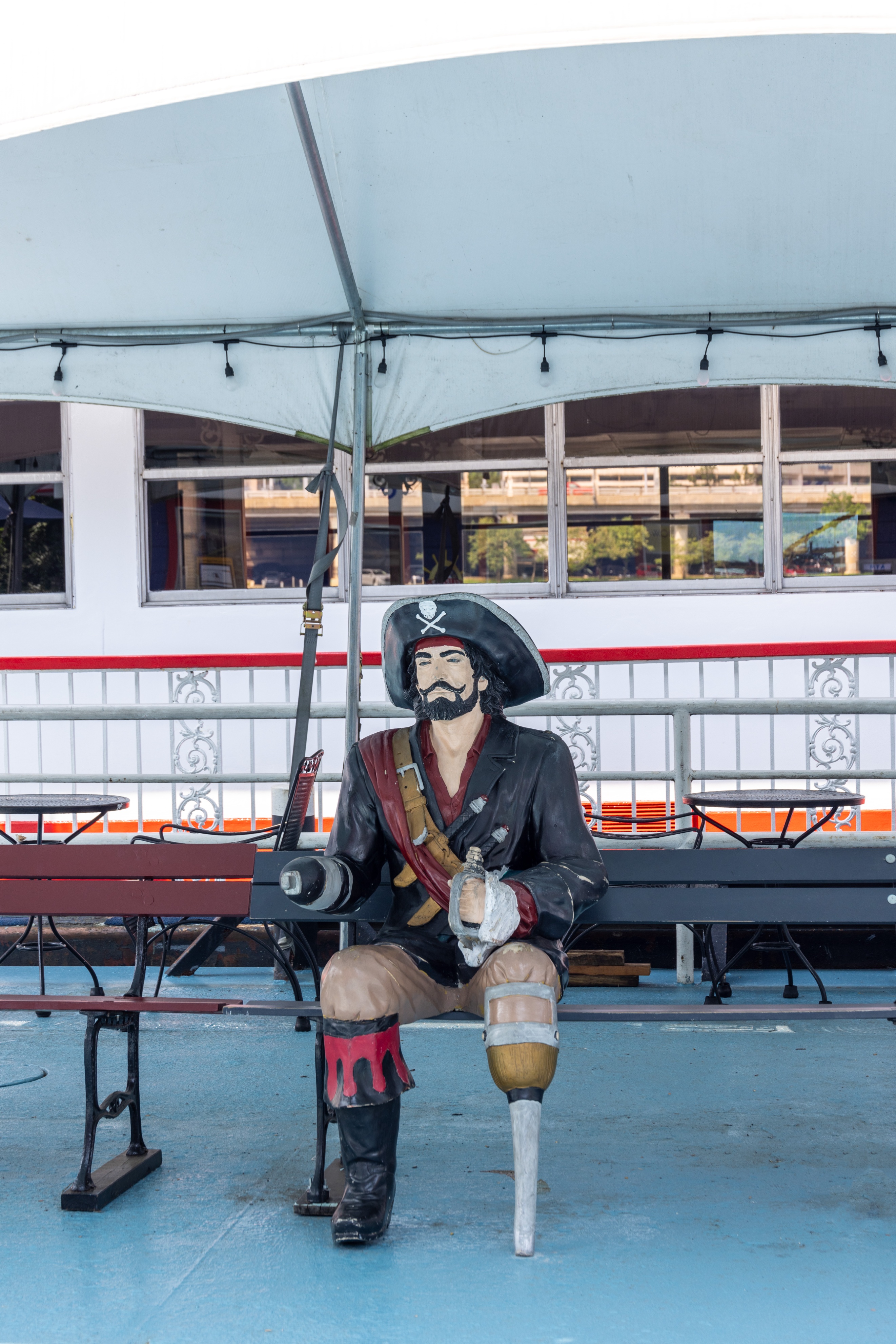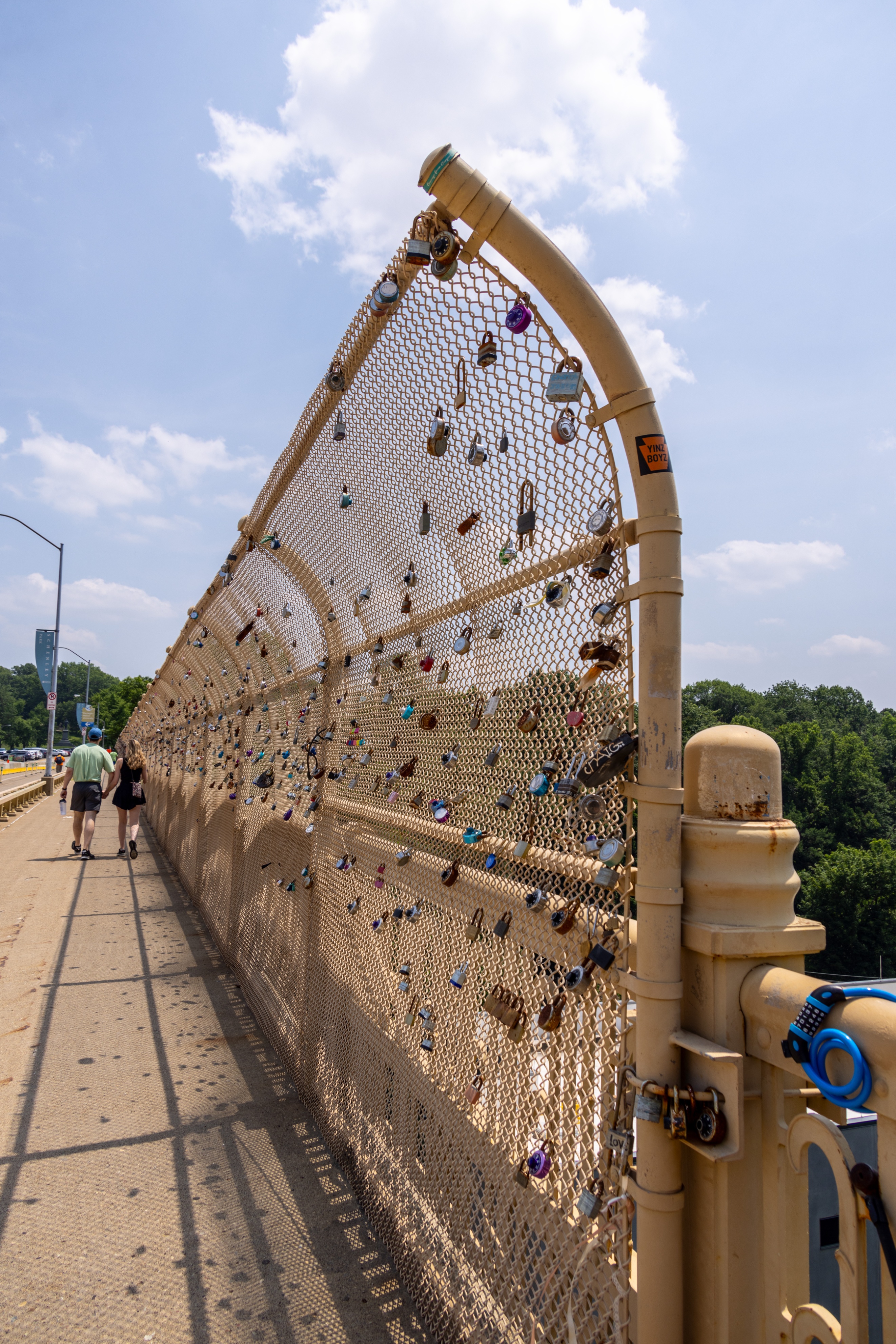 我们来到Point Bridge附近的游船码头,这里有锈迹斑斑但仍在使用的铁路,等船时正遇上一列长长的火车驶过,怕不是有近百个车厢。