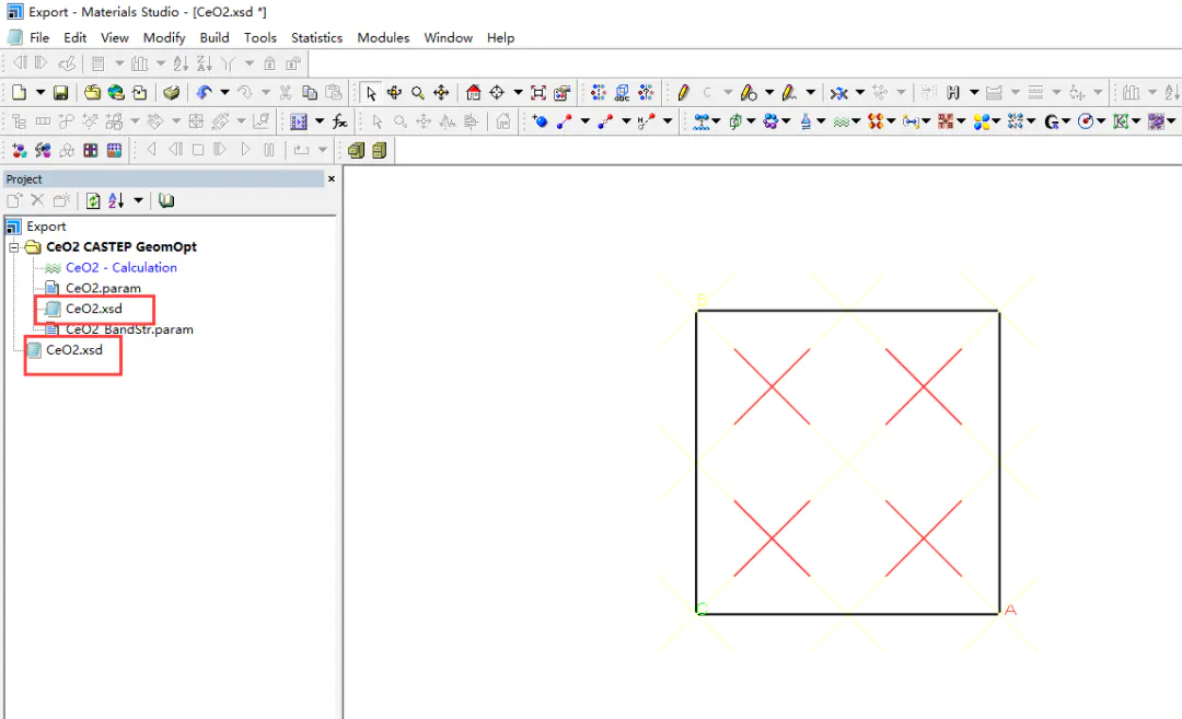 我们使用Materials Studio软件打开结构文件后,在软件中该结构的文件格式会自动修改为.xsd格式。