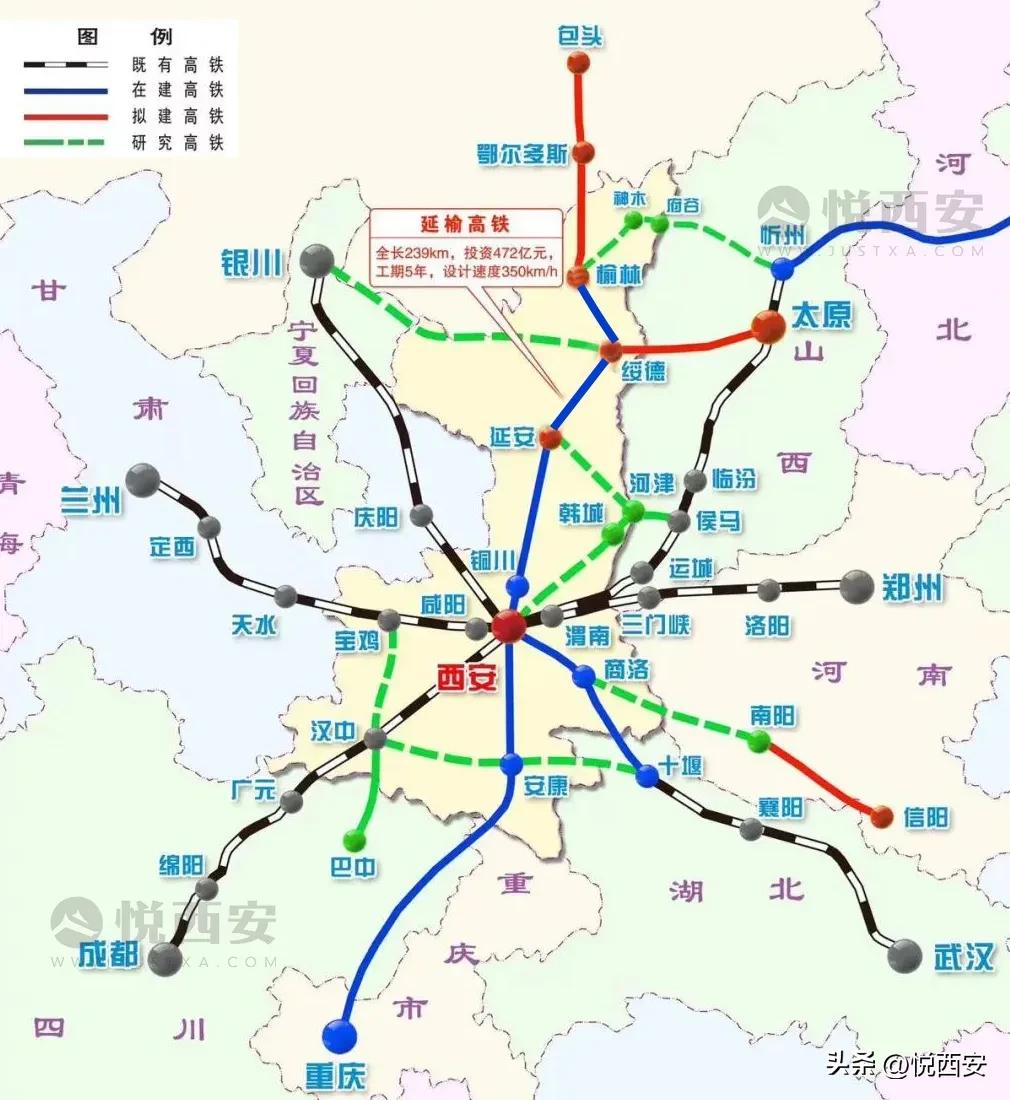 陕西“米”字型高铁网示意图