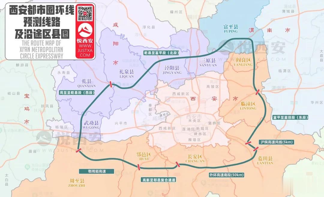 西安都市圈环线走向示意(以实际建设为准)