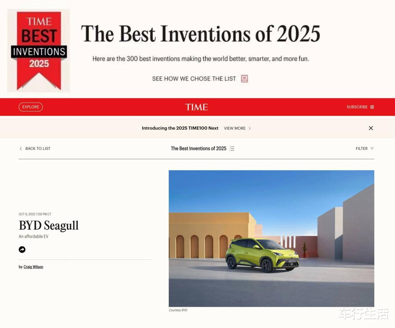 比亚迪海鸥登上美国《时代周刊》2025年度最佳发明榜单