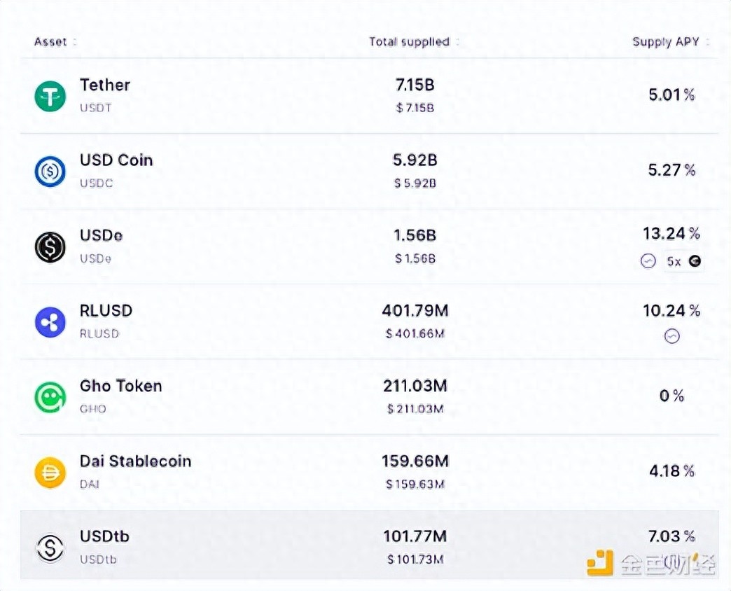 Aave上主要稳定币的存款利率
