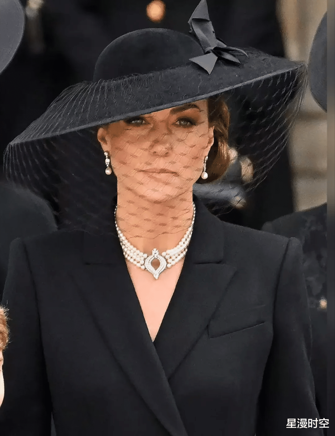 但日本王室成员佩戴的则是状似珍珠的黑玉项链,低调浪漫,又不乏肃穆感,也是完美契合了场合的庄重氛围!