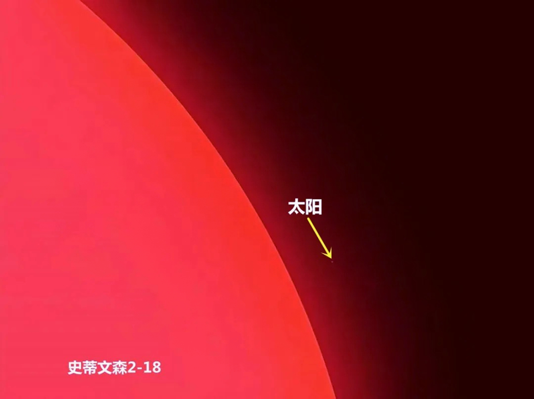 实际上,在盾牌座方向,距离我们大约2万光年的位置上,就有一个体积极为庞大的“红超巨星”——“史蒂文森2-18”(Stevenson 2-18)。观测数据表明,其半径约为太阳的2158倍,体积大概是太阳的100亿倍,它也因此被普遍认为是已知宇宙中体积最大的恒星。