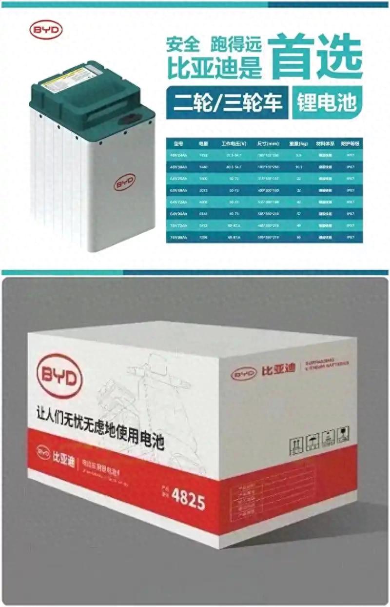 比亚迪在去年5月17日率先发布了两轮三轮电动车专用磷酸铁锂,3月3日又发布了几款,总共会发布32款产品,涵盖48V、60V、72V不同电压和不同容量的电动车。采用汽车级电芯,具有能量密度高、安全性高、充电速度快、保养维护简单、产品适配性更强、还具有重量轻能量密度高、放电电流大动力强,不仅可以让电动车跑的快还能跑得远。