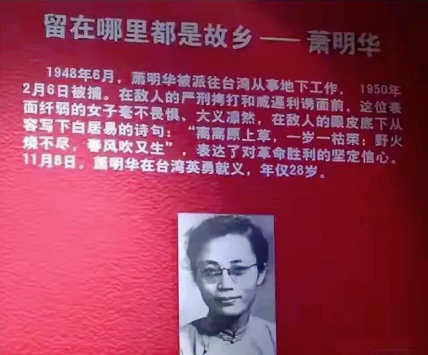 1982年,萧明华的遗骸从台湾运回大陆,安葬在北京八宝山革命公墓。