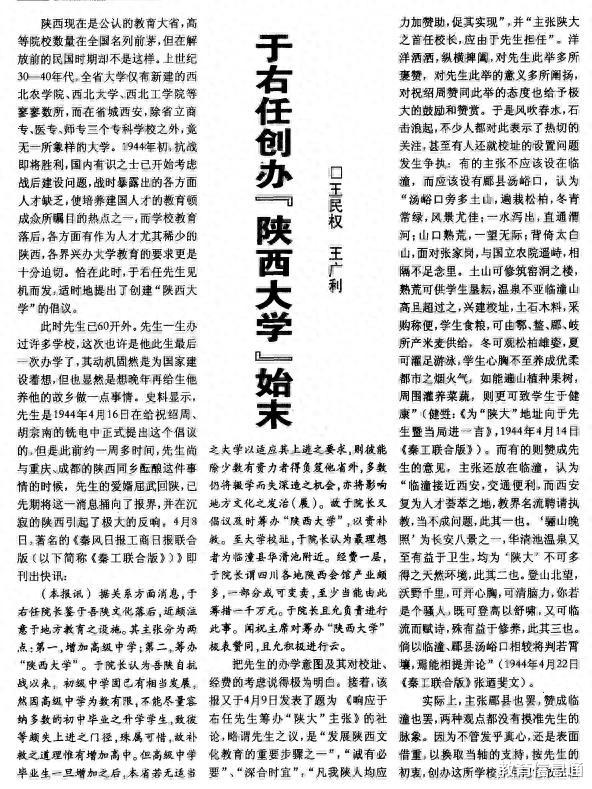 为什么没有陕西大学?据有关信息,中国近现代政治家、教育家、书法家于右任先生在1944年提出了创建“陕西大学”的倡议。此时他已经60开外了,一生办过许多学校,这也许是他此生最后一次办学了,其动机是为国家建设着想,想晚年再给生他养他的故乡做一点事情。最终未能实现,创办陕西大学的计划发生了意外成为泡影。具体细节可以看下面图片。