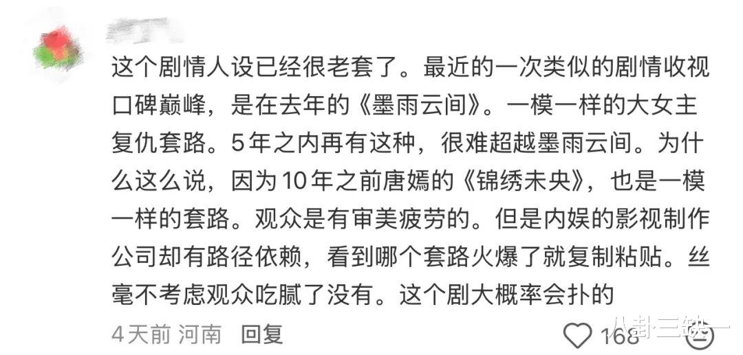 眼看着重生复仇古偶慢慢冒头成了热潮,市场上同类剧扎堆涌现,它没赶上;转头女将军权谋、大男主爽文、背德向拉扯等类型的古偶轮番接棒,审美潮流换了一波又一波,曾经的热门套路也渐渐没了新鲜感,它还在选角泥潭里原地打转。