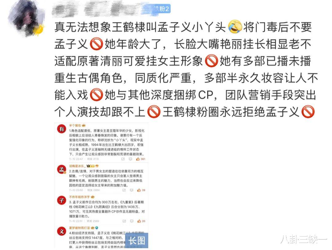 王鹤棣粉丝直接甩出万转长文“永拒孟子义”,从角色适配度、剧粉盘、招商能力到资方收益列了一堆分析,吐槽孟子义年龄与角色不符、风格违和,甚至放话“不做数据不氪金,还要举报维权”。