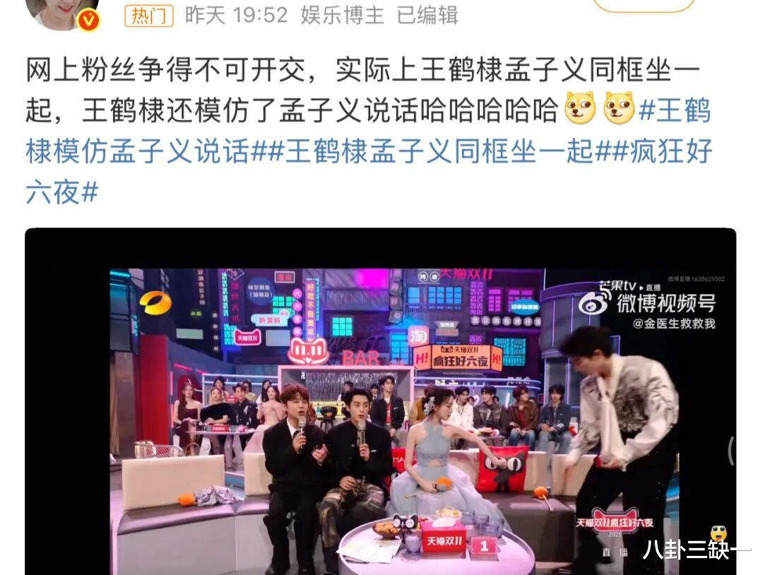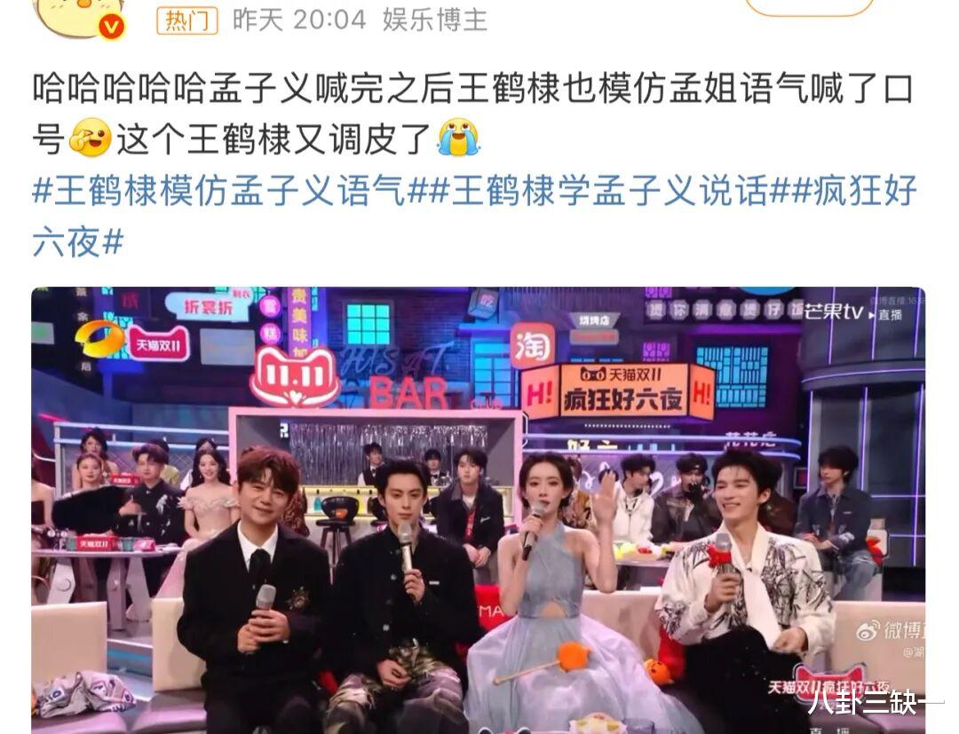 然而,“能”的理由也同样有力。尽管线上抵制声浪震天,昨晚两位正主在《疯狂好六夜》却依旧表现得浑然无事,不仅大大方方同框互动,王鹤棣还现场模仿起孟子义的说话语气,逗得她当场害羞低头。