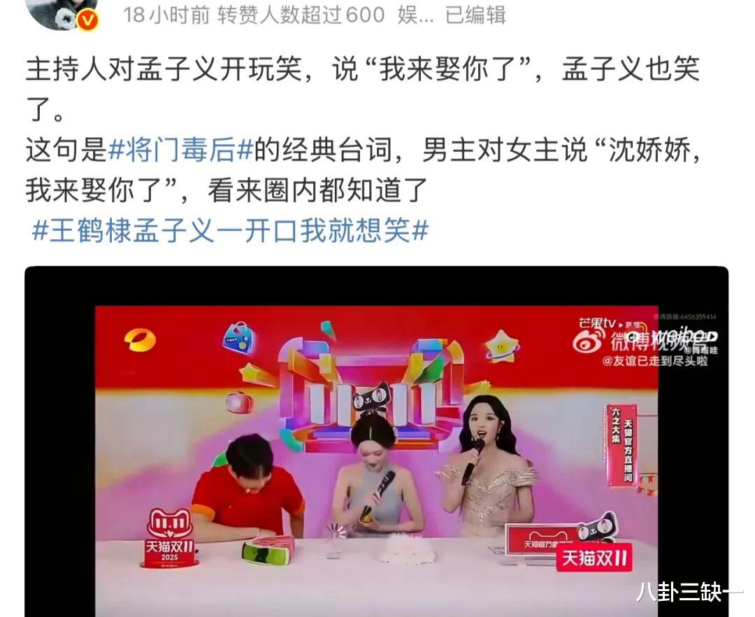 更有主持人适时加入战场,对着孟子义精准抛出原著中的经典台词“我来娶你了”。