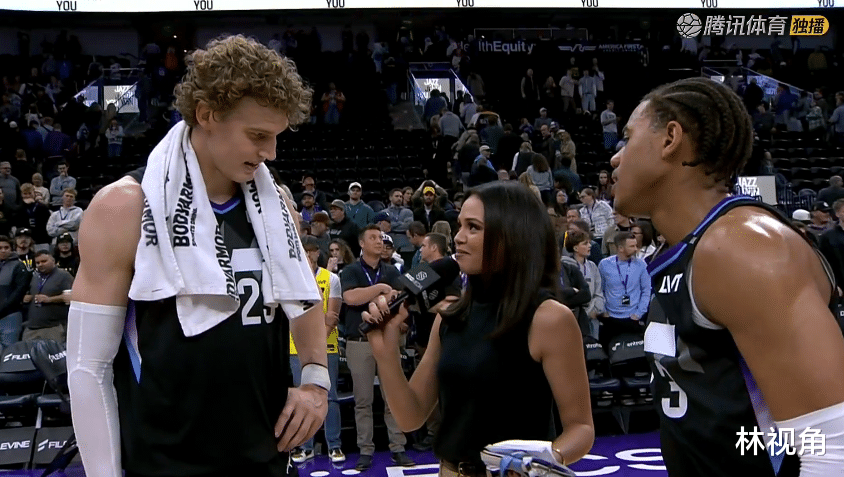 本场比赛表现亮眼的马卡和乔治,在场边一起接受记者采访。