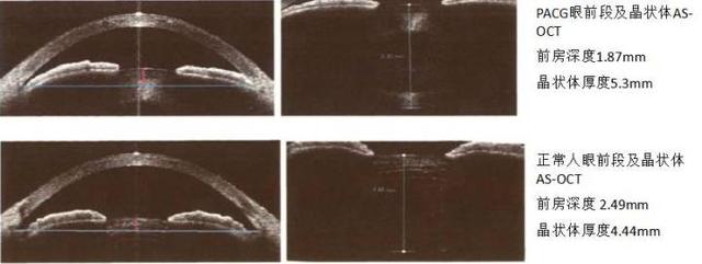 我们在进行眼部生物测量检查的时候,可以观察到患者的眼轴是短的,前房是浅的,它不一定有非常明显的白内障,但是晶状体是增厚的。这类病人除了眼部存在干眼、视疲劳,精神症状不佳甚至有睡眠障碍之外,出现青光眼的风险会明显增高。由于晶状体的增厚,会导致房水堵塞,循环受阻,造成容易发生闭角性青光眼。