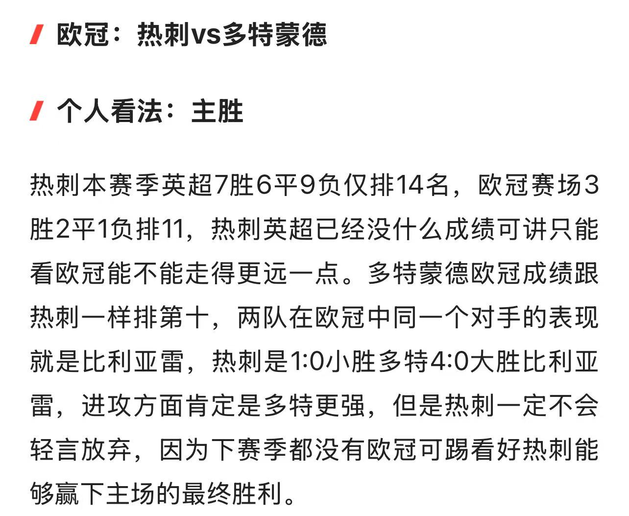 上期回顾:里斯本2:1主场击败大巴黎,国际米兰1:3惨败阿森纳,热刺二比主场大胜多特蒙德。如果不算上国足3:0大胜越南的话上期就不太行,卫冕冠军大巴黎未能够赢下里斯本,国米还是未能在主场拿下一个平局,只有热刺主场2:0完胜多特过关,昨天一共分享了四场过关两场,还是有点可惜的。