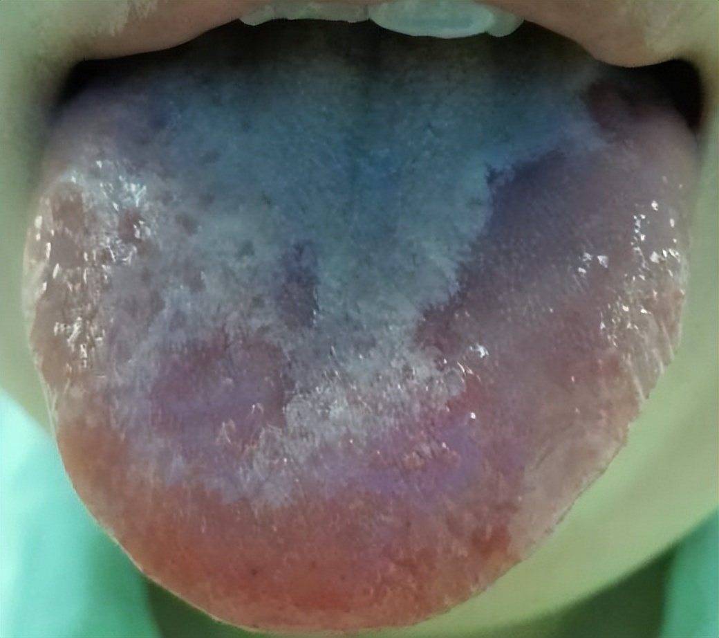 ⑥青色舌:青色舌的表面颜色类似于皮肤上可见的“青筋”,完全没有红色,这种现象称为青色舌。这是由于体内阴寒邪气过盛,阳气受到压抑而无法正常发挥,导致血液循环不畅,舌部颜色发青。这种情况通常与寒凝阳郁、阳虚寒凝或体内有瘀血有关。