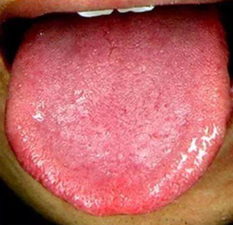 ②嫩化舌:舌体表面纹理细腻,色泽显得娇嫩,形态往往偏胖,这种现象称为嫩化舌,通常与虚证有关。