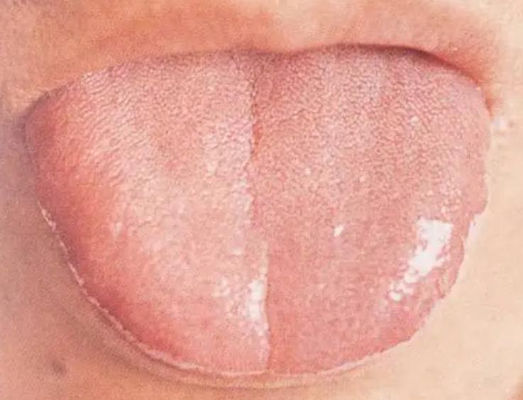 ②软弱舌:舌体感觉软弱且无力伸展,失去活力,这种现象称为软弱舌。这通常是由于气血极度虚弱,阴液无法滋养筋脉所致。可见于气血两虚、热伤津液、阴虚极点等症状。