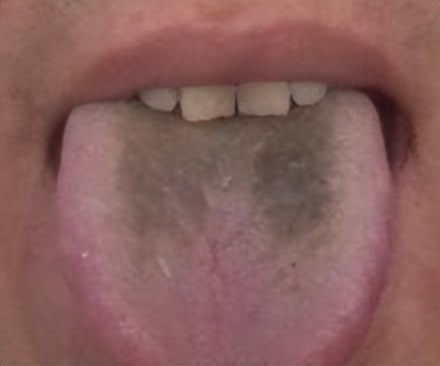 (3)灰苔:灰苔即浅黑色。通常由白苔变暗转化而来,也可与黄苔同时出现。主里证,常见于里热证,也见于寒温证。苔灰而干,多属热炽伤津,可见于外感热病,或阴虚火旺,常见于内伤染病。苔灰而润,见于痰饮内停,或为寒湿内阻。