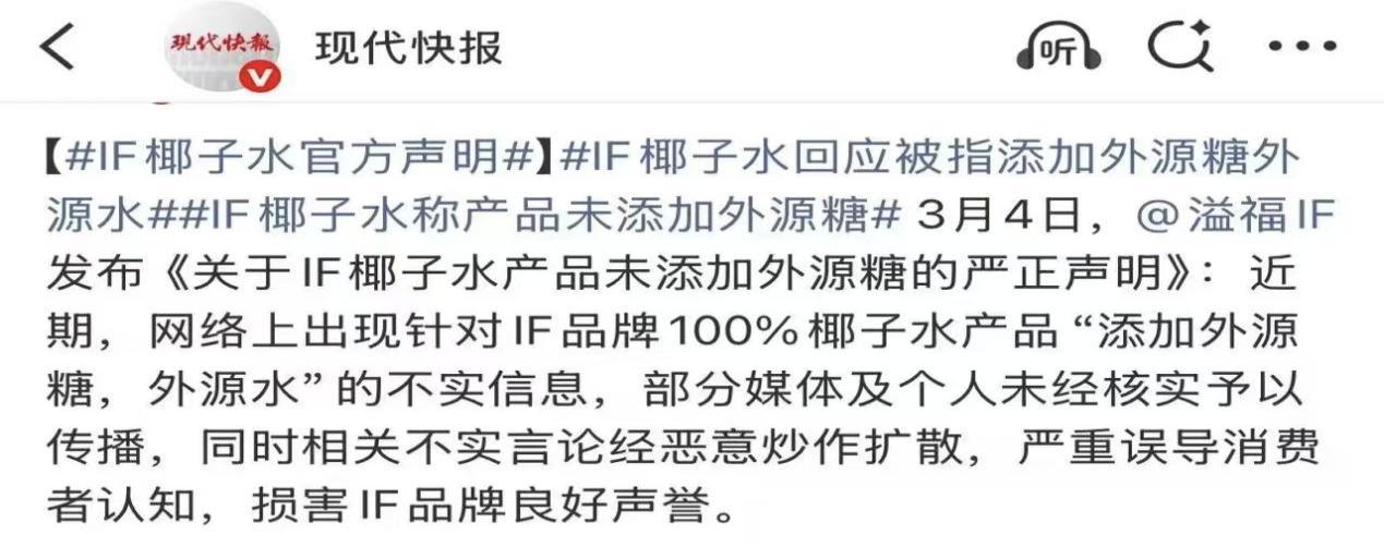 IF就强调说,“所有的糖分都是来自天然椰子”,它们还晒出检测报告来证明自己,但是资本市场那边表现出的恐慌还是遮不住。