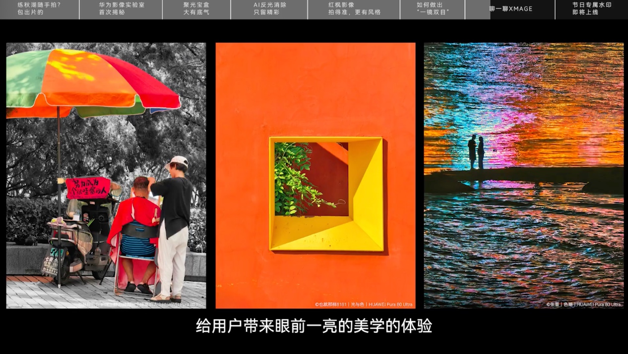 从XMAGE影像科学实验室的“现实世界”场景,到一镜双目、聚光宝盒和红枫原色摄像头的器件突破,再到AI辅助构图、AI去反光、超清全景等体验创新,华为正以系统化创新推动移动影像持续向前。随着华为Pura 80系列与华为Mate XTs 非凡大师的全面上市,华为不仅巩固了在影像领域的领先地位,也为用户带来了更多记录生活与表达美学的可能性。