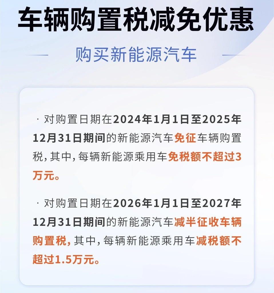 根据最新政策,2025年是新能源汽车享受免征购置税的最后窗口期。从2026年起,购置税将恢复征收。这意味着,明年购车成本将明显上涨。