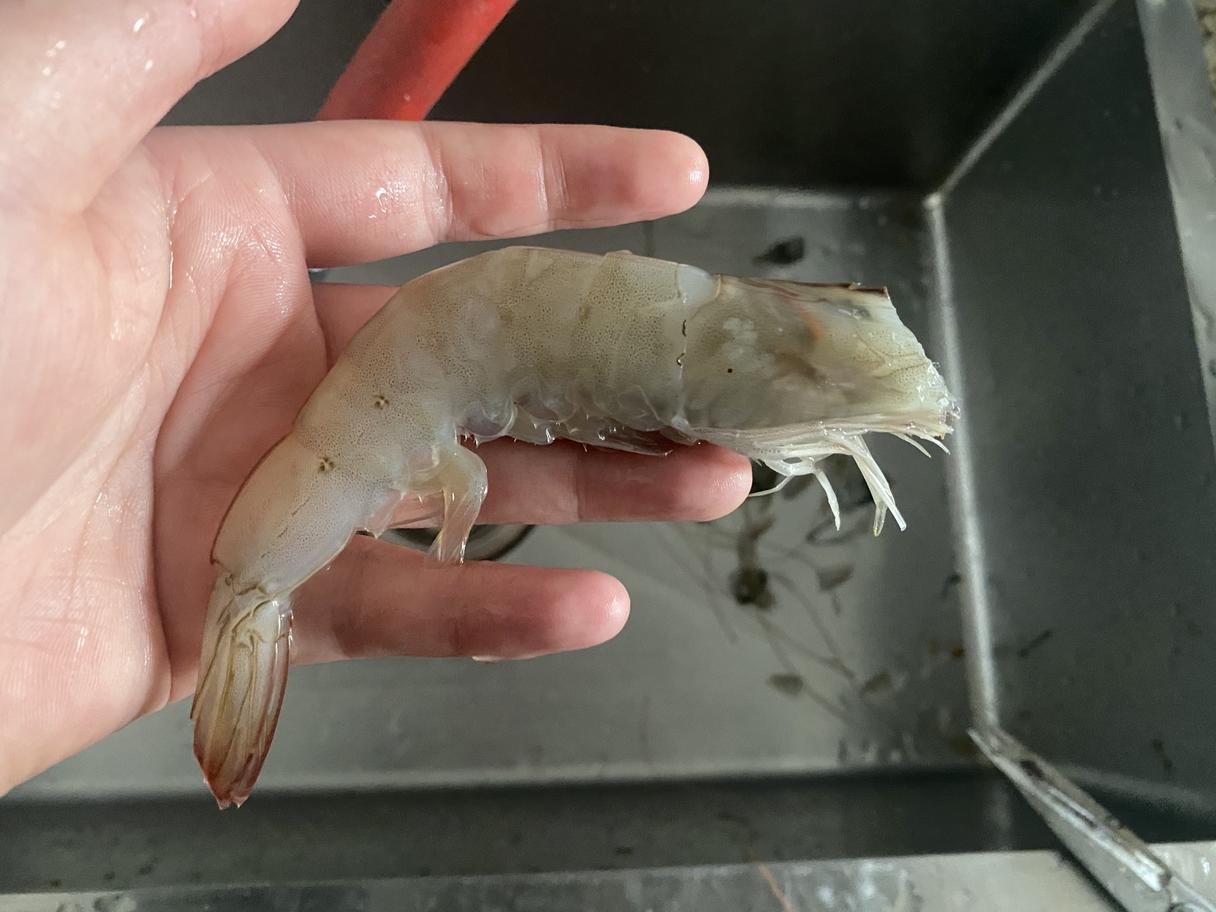 初处理:新鲜的大虾洗净后,去除沙肠(虾背部的黑色线条),用剪刀轻轻剪开虾背,使其更易入味。