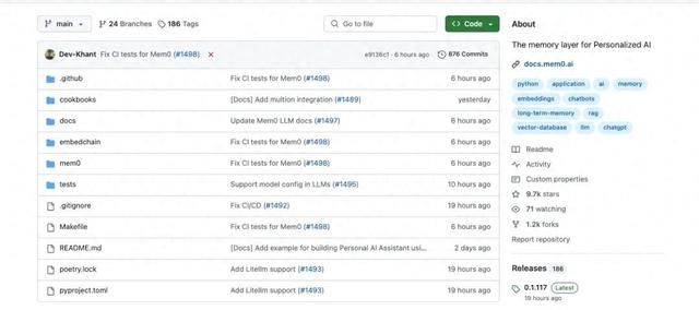 Mem0 可以用来开发长期、短期记忆,它能记住用户的偏好、过去的交互、事情的进展,可以为应用构建适应性的学习体验。使用场景包括虚拟陪伴、生产力工具、健康关怀或 AI Agent 客户支持等。开源不到一天,就收到了 9.7k 颗星,可谓是风靡全球,联合创始人 Taranjeet Singh 都感到有些受宠若惊了!