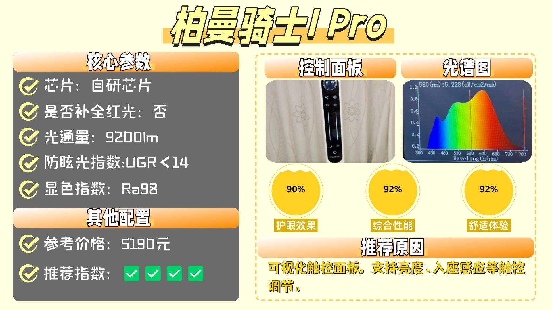 配置及体验:柏曼采用一体式发光面,发光面在经过120°广角漫反射技术和高透光导光板均匀光线后,能够实现明亮无明暗差的光线,并在一定程度上减少眩光,实际防眩光指数在10左右,另外,在功能设计上,可视化触控面板,支持亮度、入座感应等触控调节,整体使用起来比较灵敏,总的来说,柏曼表现不错,但也适合一些有点预算的朋友去考虑。