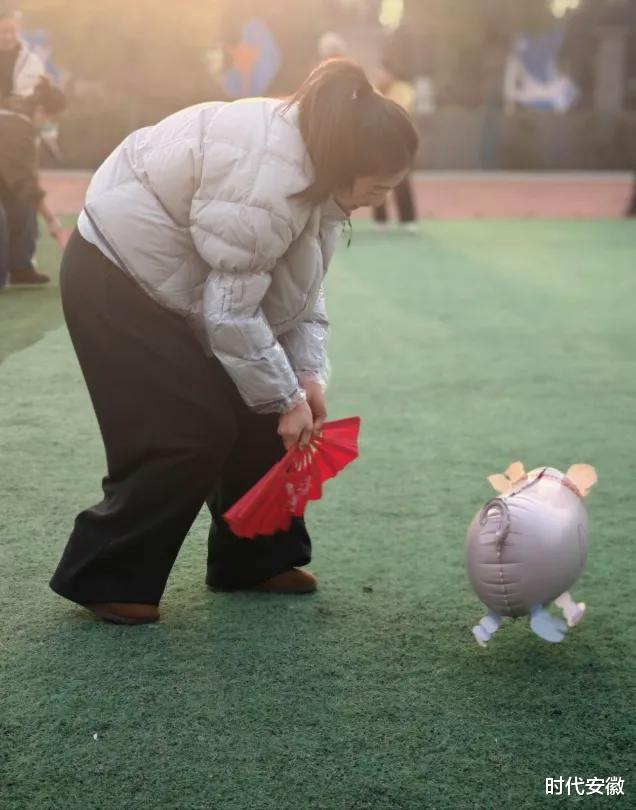 参赛老师需要用折扇小心翼翼地驱赶小猪沿着跑道前进。平时执笔稳重的手,此刻却要掌握扇子的巧劲和角度。语文组的刘老师边扇边笑:“这可比批改作文难多了!它有自己的想法。”数学组的马老师则巧妙利用侧向的微风,调整扇面角度,用精准的“空气动力学”引导“小猪”直线前进,流畅的动作引来一片赞叹。