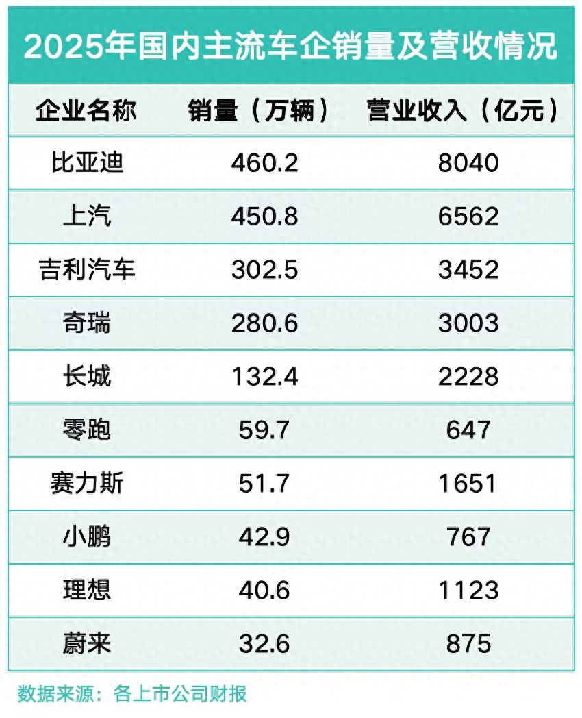 国内主流上市车企2025年的财报已经陆续公布完毕,从各大车企公布的财报中也可以看出,市场竞争已经从价格战转向了更深层次的营收质量和产业逻辑的比拼。其实2025年汽车行业的内卷情况非常严重,但国产汽车品牌的头部车企依旧保持稳健的增长态势,同时实打实的经营数据也表现出了它们强悍的经营韧性。