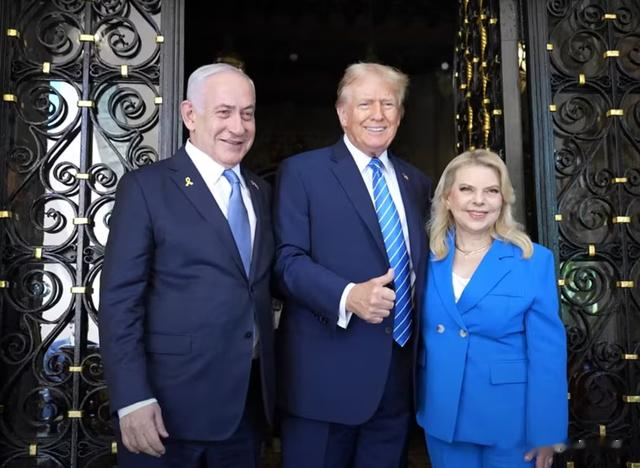 美国前总统唐纳德·特朗普2024年7月26日在佛罗里达州海湖庄园欢迎以色列总理本雅明·内塔尼亚胡到访