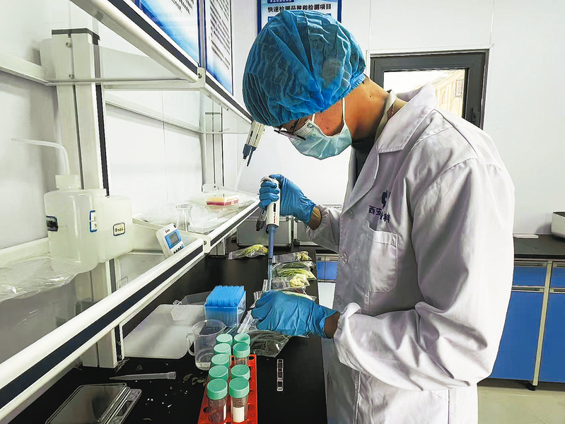 在延安农产品物流园快检室,工作人员王创博正专注地检测一批新到的芹菜。移液枪、离心机、检测仪……各种专业设备有序运转。“我们可以检测农药残留、兽药残留、非法添加物等50多项指标。”王创博介绍道。