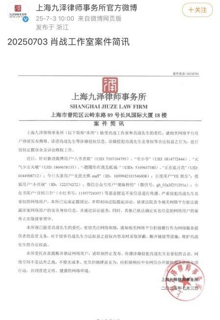 今天肖战工作室委托上海九泽律师事务所进行证据保全,并对相关侵权用户提起诉讼。这次的告黑可谓是阵仗满满,全平台的用户都有,这次是发生了啥呢?