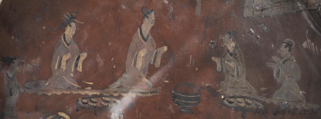贵族生活图漆盘形象的描绘了当时贵族生活的场景与礼仪,是汉代丧葬“侍死如生”习俗的反映,更是反映出中国古代高超的漆器工艺水平。除这件外,朱然墓中还出土有季札挂剑漆盘、百里奚会漆盘、伯榆悲亲漆盘、童子对棍漆盘以及人物故事大漆盘等多件木质漆盘。