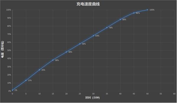 5分钟充入13%,10分钟26%,20分钟充电48%,半小时充入68%,充满用时50分钟,充电速度只能说是差强人意。