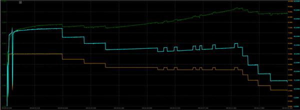 至23分30秒,功率略微下降2W,其间经历数次波动。