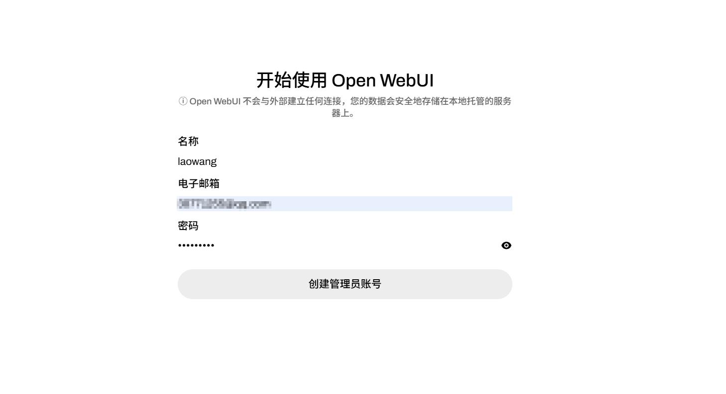 在浏览器输入登陆地址进入Open WebUI界面。登陆地址是NAS的局域网IP+端口,比如我的是: