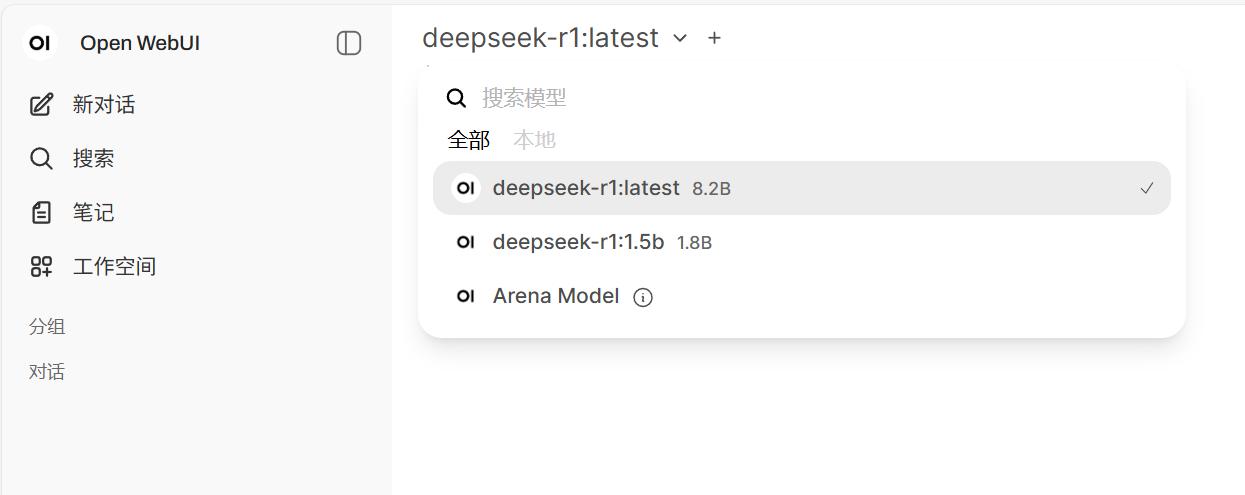 重新登录 Open WebUI ,在左上角确认模型是否成功加载。
