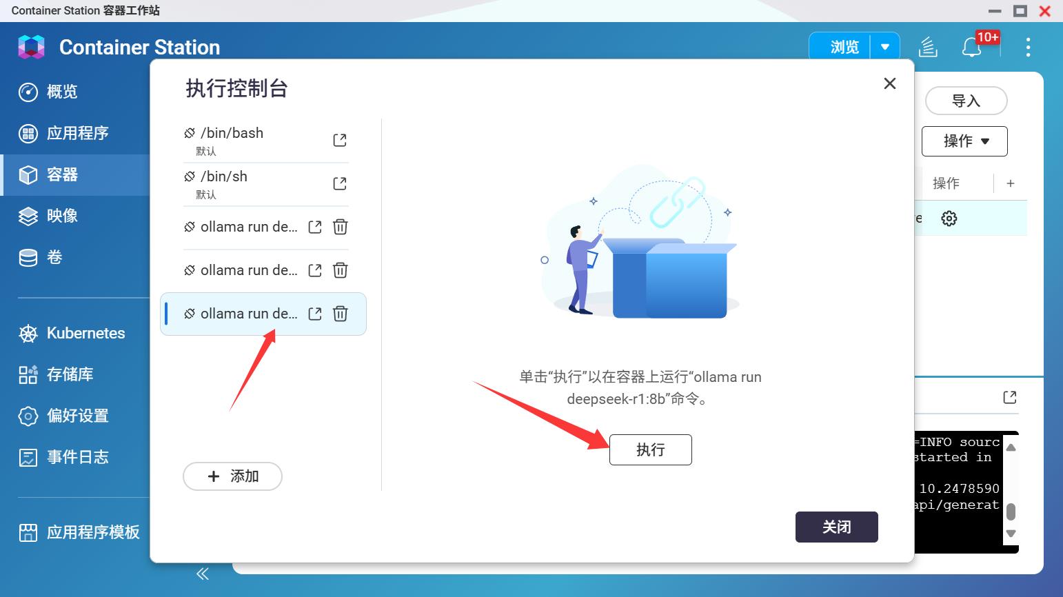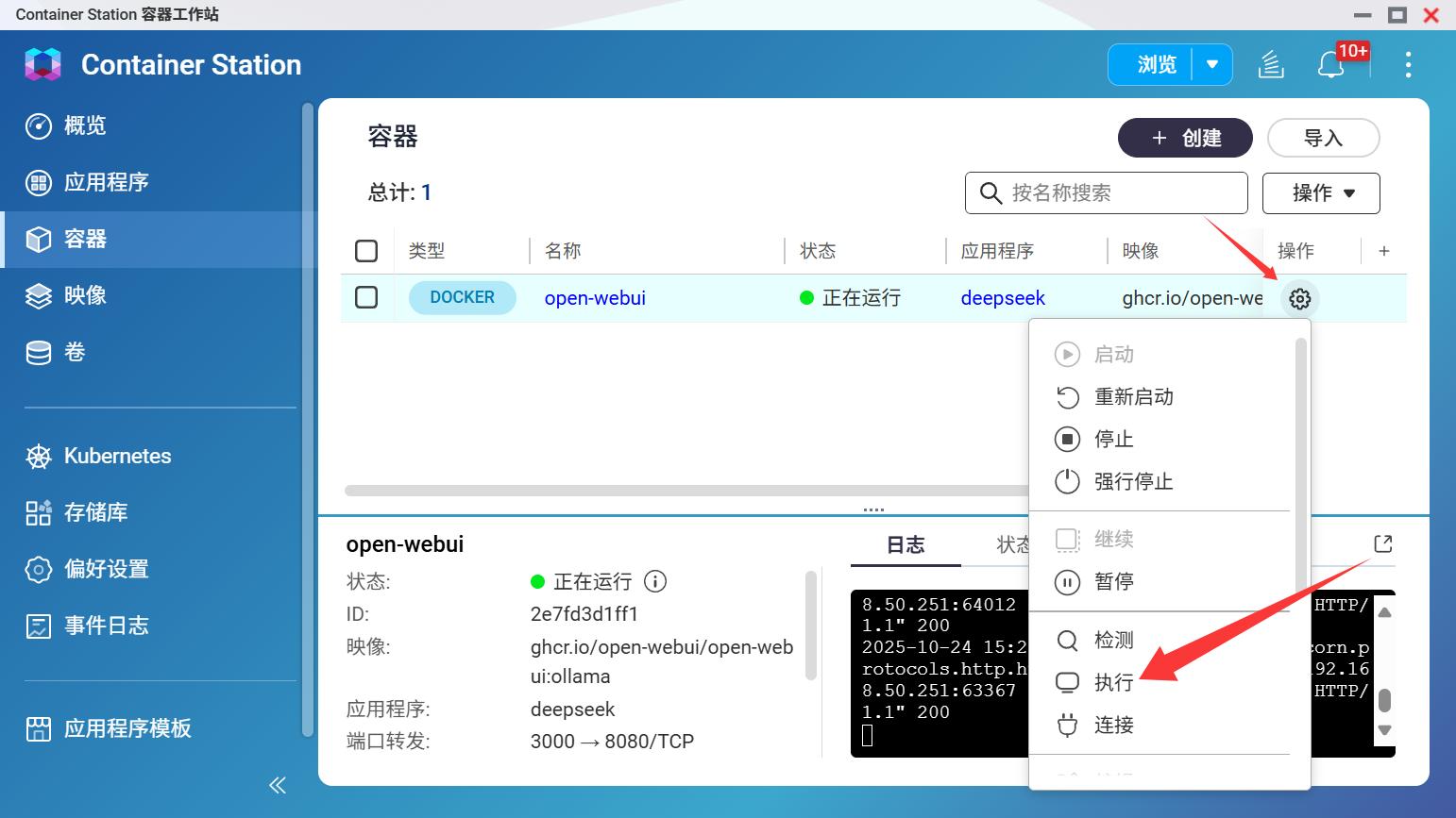 复制之后来到Container Station,在创建的容器后方设置-执行