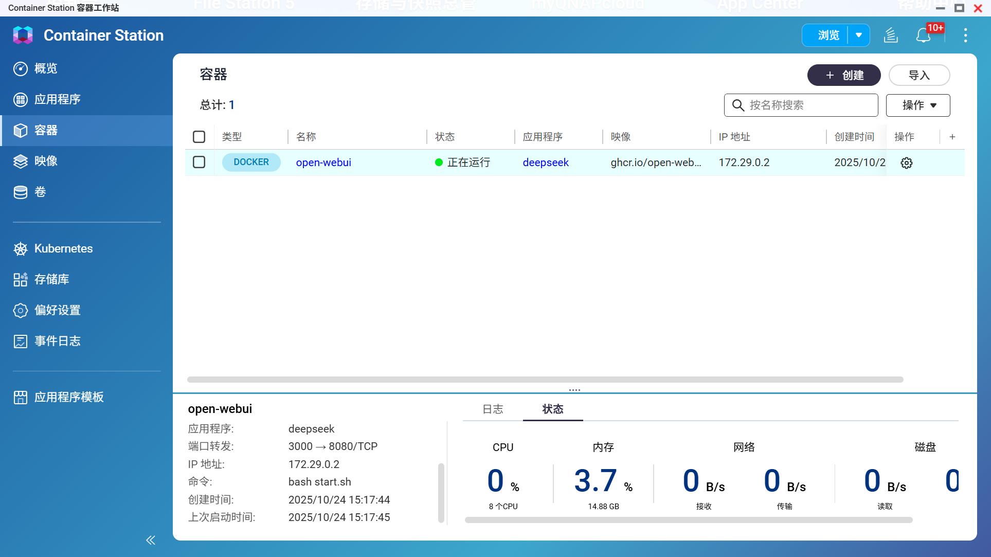 利用威联通NAS的Container Station配置Open WebUI,Container Station-应用程序-创建。
