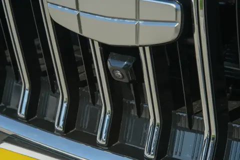 第5代帝豪在外观设计上,把中式韵味拿捏得很到位。前脸的前格栅采用12根竖状立柱造型,看着既大气又有底蕴;搭配造型犀利的LED前灯组,灯组内部有上下两条灯带,还能提供170多米的照射距离,夜间行车时能保证清晰视野。前保险杠两侧的仿进气口用了双L形装饰,另外新车在前车标下方还布置了一个摄像头,实用性和精致感都兼顾到了。