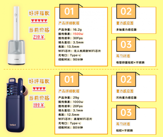 产品针对家庭用户、敏感耳道人群以及有精细清洁需求的用户设计,通过多项安全与性能测试,兼顾成人、老人、儿童使用场景,在专业可视挖耳勺品类里,凭借稳定体验和高安全性收获了不错的口碑,性价比更高。