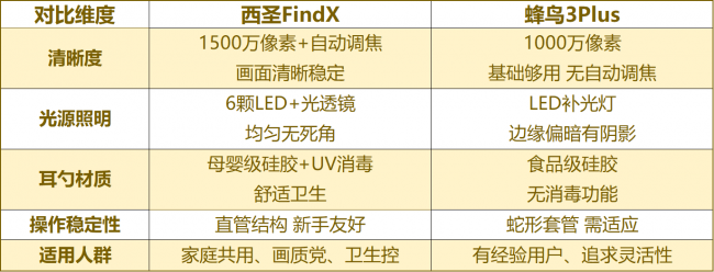 日常自己清理耳道、给孩子老人护理,便携又好用的可视挖耳勺基本是刚需。这次直接选了市面上口碑和销量都不错的两款——XISEM西圣FindX、bebird蜂鸟3Plus,从画面清晰度、光源亮度、耳勺材质三个最影响使用体验的维度实测,不夸大不拉踩,哪款更值得买,看完就有答案。