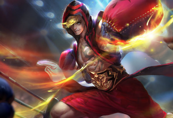 第三款是达摩的「拳王」。作为一款早期上线的六元皮肤,「拳王」以其独特的街头拳击手主题和高度契合英雄设定的设计,赢得了长久的口碑。皮肤将达摩的拳套变为经典的拳击手套,技能特效也围绕拳击展开,例如二技能真言·明王的快速出拳特效。它的手感扎实,拳拳到肉的打击反馈非常清晰,让达摩的连招体验更加爽快。尽管达摩的强度有所起伏,但这款皮肤本身的质量,使其在任何时期都是达摩爱好者的首选之一。