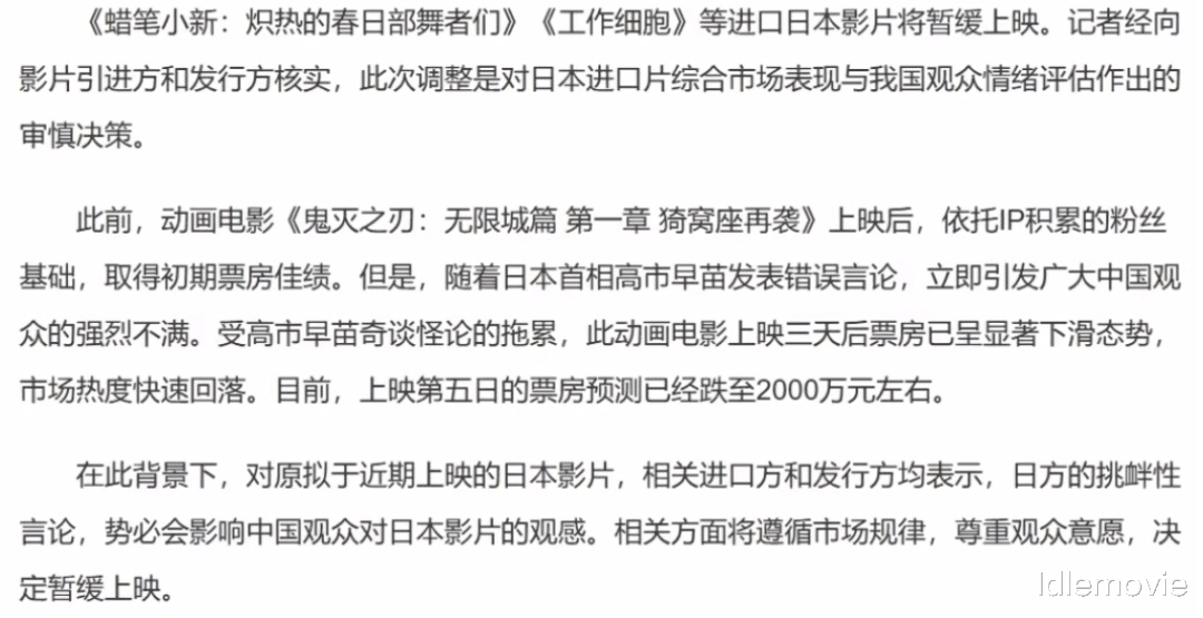 如暂缓进口《蜡笔小新:炽热的春日部舞者们》《工作细胞》等影片,“没送审的,不让送了;送审的退回了;过审的停止报档期;定档的自己写撤档申请;预售的开始退票......”