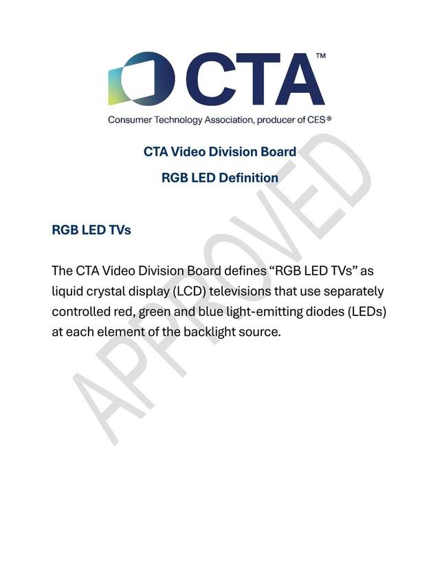 3月26日,全球消费电子领域最具权威性的机构——美国消费技术协会(CTA)正式发布并生效RGB-Mini LED技术认定标准。