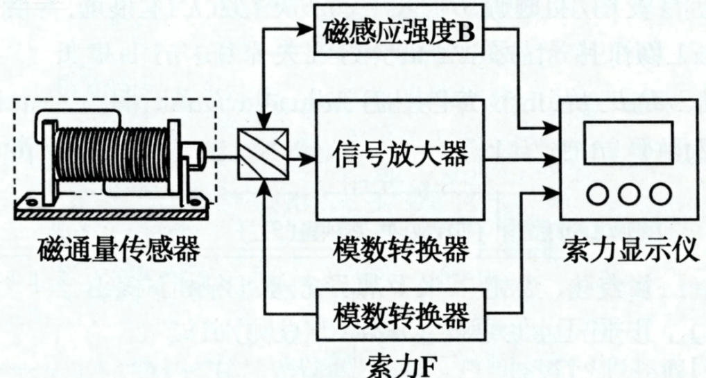 铁磁材料(钢索、钢绞线)受力后磁特性(磁导率、磁化状态等)发生变化,通过外加磁化与磁场检测建立“磁—力”映射关系推算索力。这类方法常称磁弹法或磁通量法测索力。