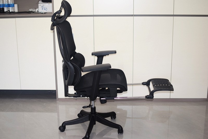 调节表现:调节功能全面,能满足办公与休息场景需求。扶手支持多方向调节,靠背后仰最大角度约150度,支持四档锁定。头枕、坐垫、椅背均支持调节,配备可伸缩且长度可调的脚踏。缺点是部分调节部件阻尼感略大,操作时不够顺滑。
