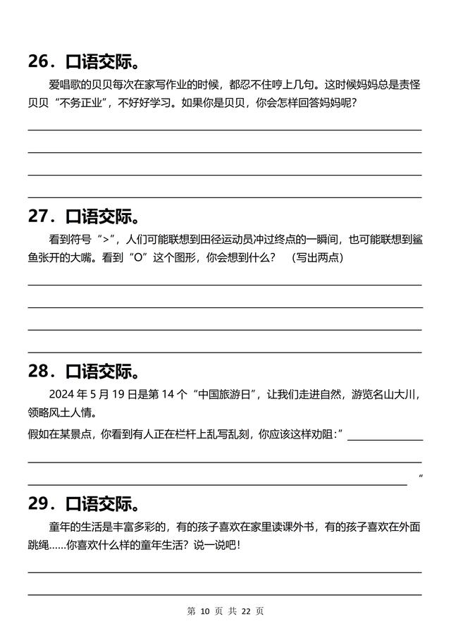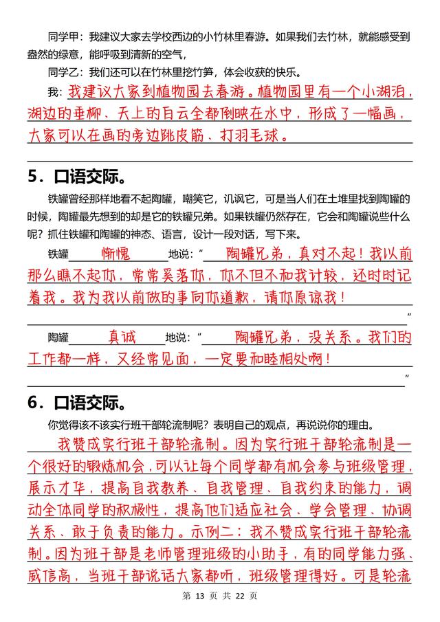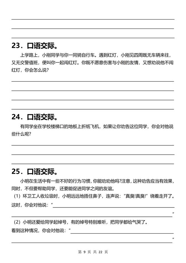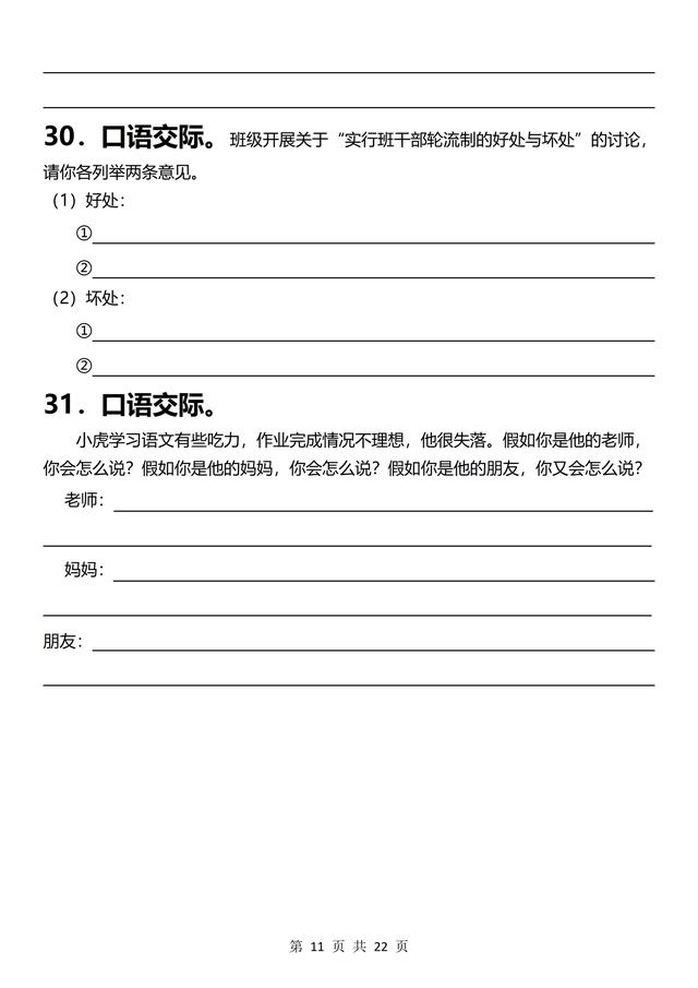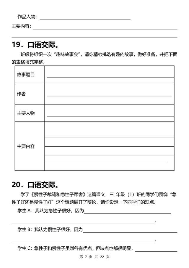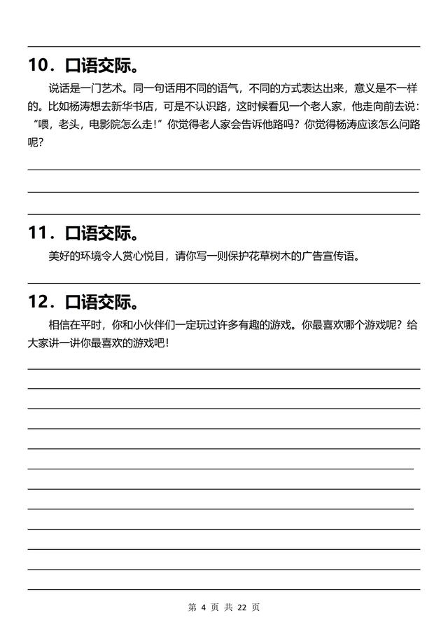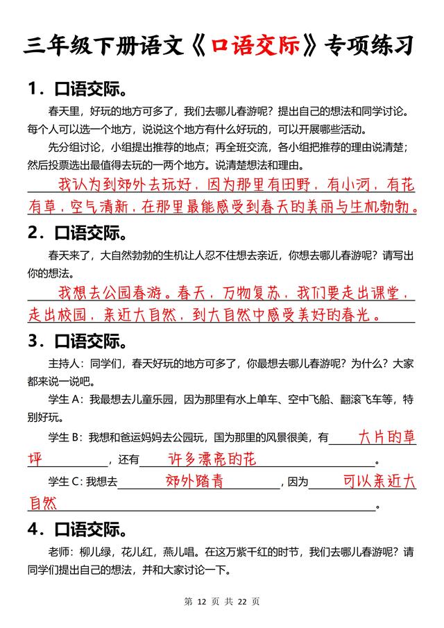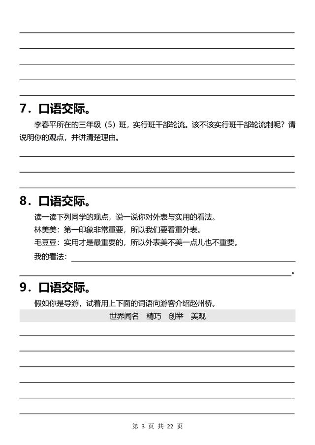 三年级下册语文,《口语交际》专项练习(含答案22页),收藏备用